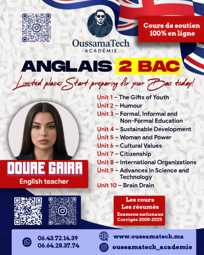 Un programme complet couvrant toutes les unités du 2ème bac, avec cours, résumés, examens et corrigés officiels.