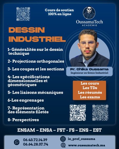 Formation complète en dessin industriel couvrant les bases du dessin technique, les projections, les coupes, les tolérances et les systèmes mécaniques.