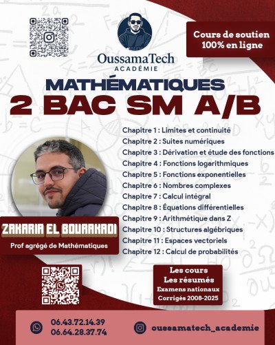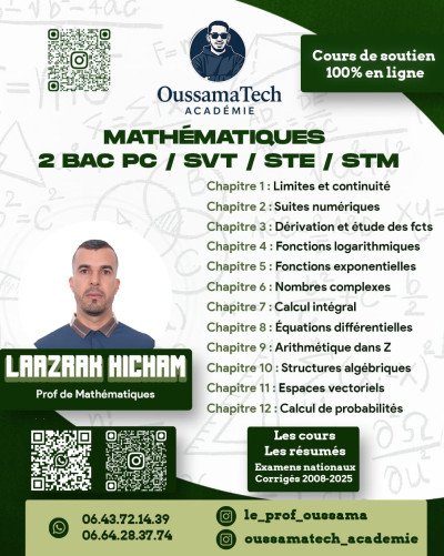 Un programme complet couvrant toutes les notions de mathématiques du 2ème Bac : limites,...