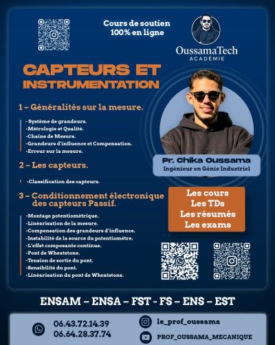 Le module Capteurs et Instrumentation couvre les bases de la mesure, la classification des...