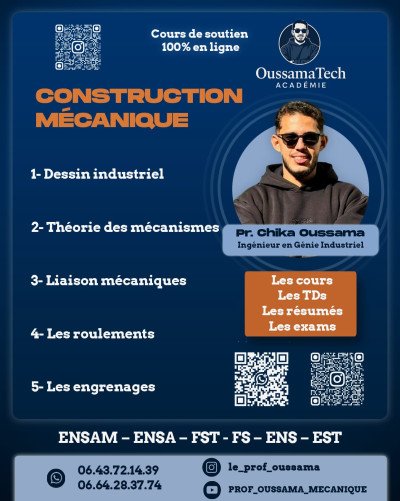Le module Construction Mécanique couvre le dessin industriel, la théorie des mécanismes...