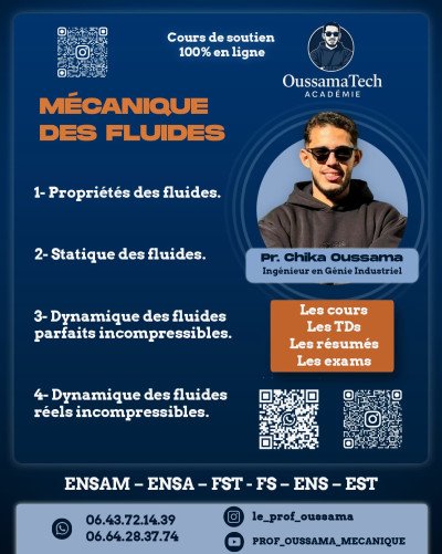 Le module Mécanique des Fluides couvre les propriétés des fluides, la statique des flui...