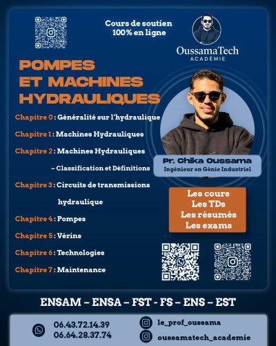 Le module Pompes et Machines Hydrauliques couvre les généralités sur l’hydraulique, l...